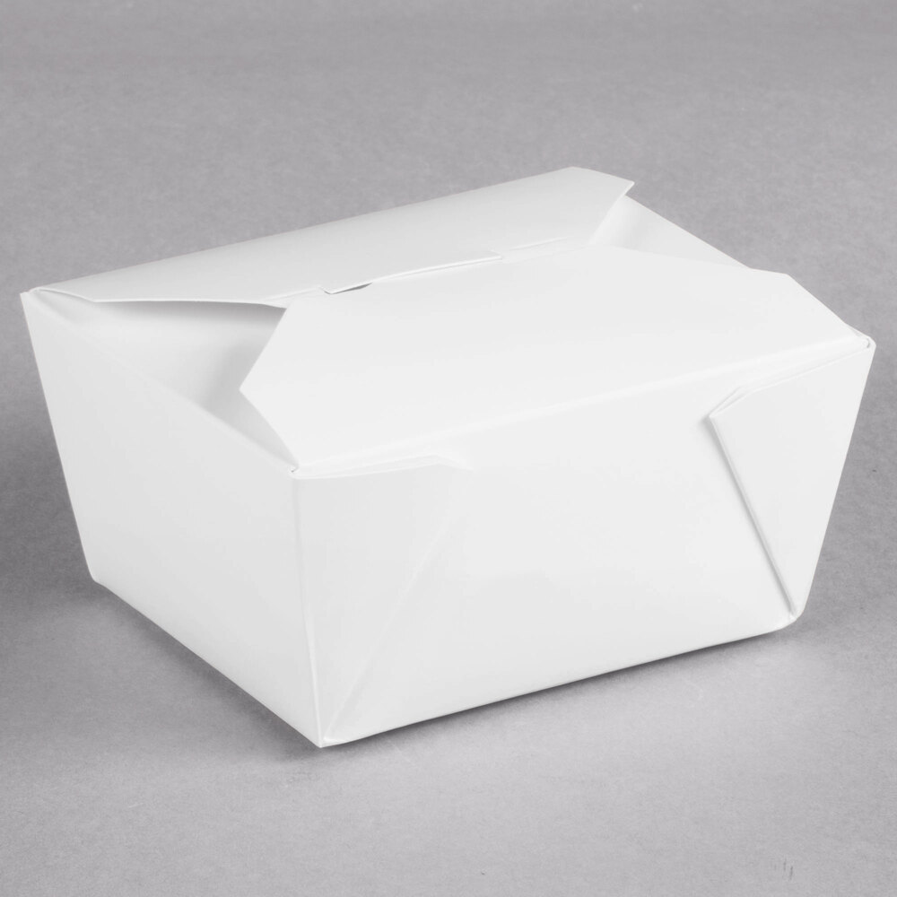 Featuring an attractive, folded design, this container is perfect for boxing up both hot and cold foods. The #1 size is ideal for housing sides and desserts. Plus, the SBS paperboard construction provides added durability. Holding up to 26 fl. oz., this container is ideal for your heavy, fried or sauce-soaked foods.