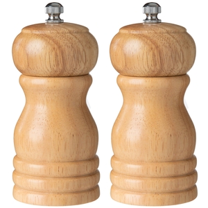 This 6 inch wooden salt shaker and pepper mill set is a great deal. A more modern set than the traditional wood sets but with the same feel.
