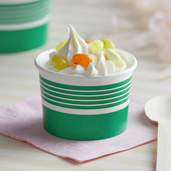 Serve a wide variety of cold and frozen treats with this Choice 4 oz. green paper frozen yogurt cup!