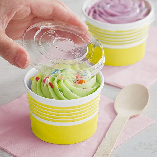 Choice 4 oz. Yellow Paper Frozen Yogurt / Food Cup with Flat Lid - 50/Case
