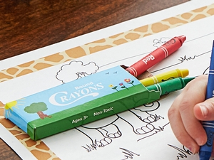 The crayons come in a single, easy-to-open pouch, and each pack can double as a souvenir for your young diners.