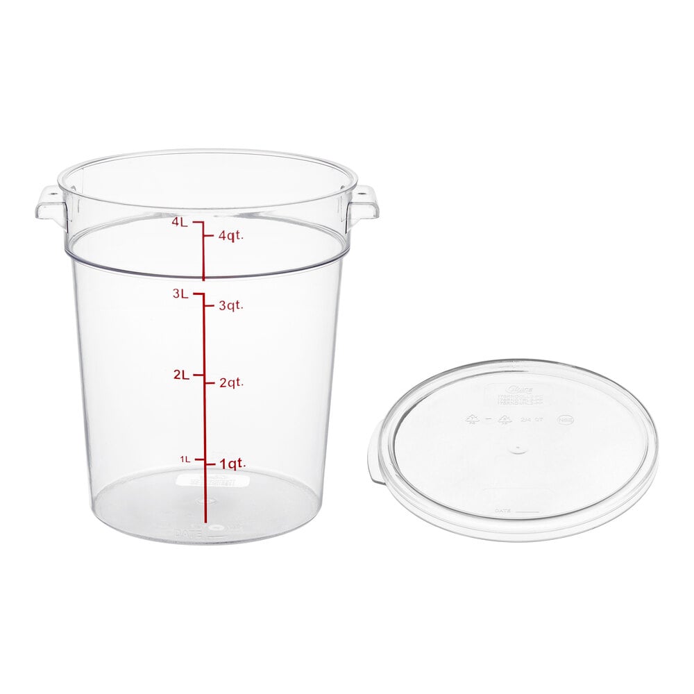 - Item #: 176rnd4c12csChoice 4 Qt. Clear Round Polycarbonate Food Storage Container with Lid - 12/Case