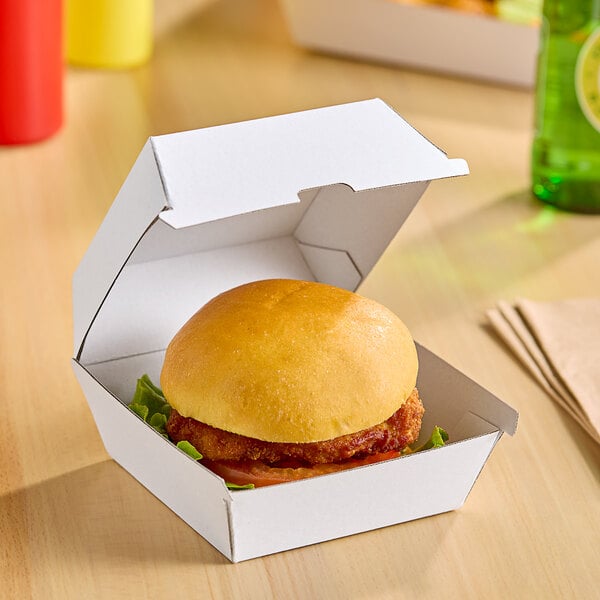 It's great for taking different types of hot and cold foods to go, including salads, sandwiches, burgers, and fries. This white container is a must-have for any restaurant, cafe, or concession stand that offers to-go options!