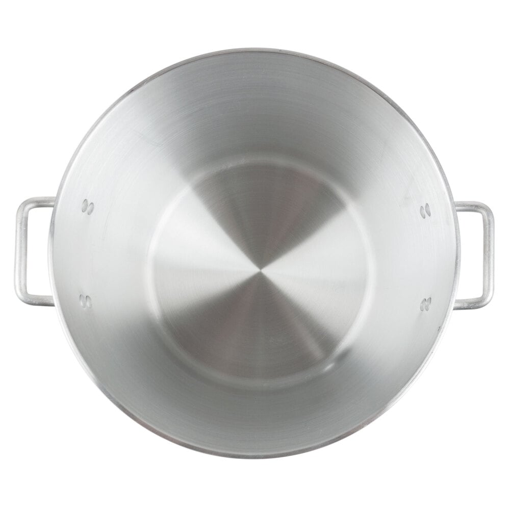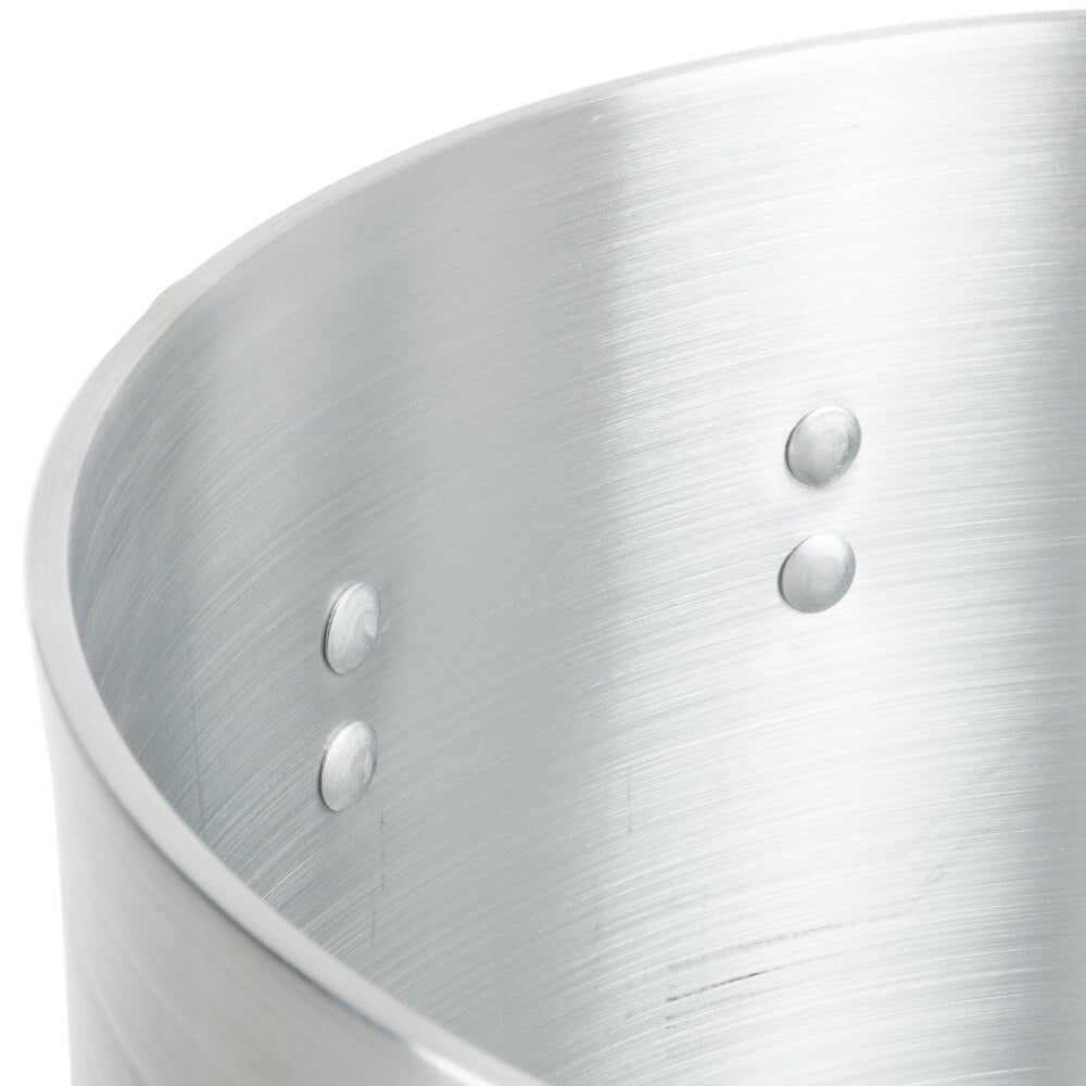 This Choice heavy weight stock pot with cover is made of heavy-gauge, reinforced aluminum for superior durability and dent resistance. The pot's wide base and high walls are great for developing complex flavors, and the included cover helps to control evaporation when preparing a variety of stocks, stews, and sauces. The cover also helps reduce food splatter to keep your work area cleaner and ensure that food ends up on your customer's plate rather than your stovetop. This pot features a 6mm thick, heavy weight aluminum construction and delivers quick and even heat distribution to the bottom and sides of the pot to eliminate hot spots.