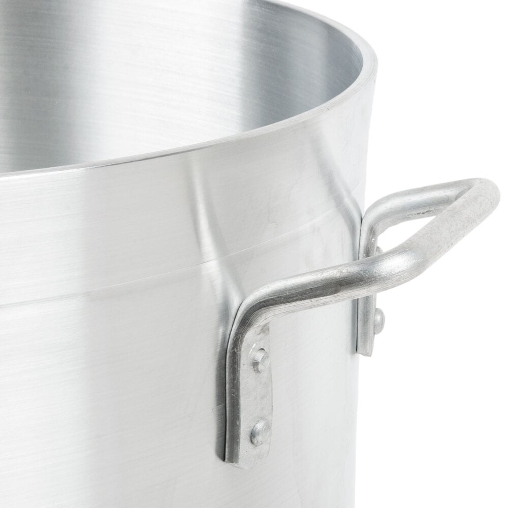 This Choice heavy weight stock pot is made of heavy-gauge, reinforced aluminum for superior durability and dent resistance. Featuring a 6mm thick, heavy weight aluminum construction, this stock pot is well-suited to withstand heavy-duty use in your commercial environment.