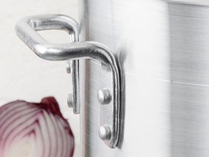 Two strong riveted handles aid in transporting the pot throughout your kitchen or dining space, and the riveted handle on top of the cover is easy to grab with a hot pad or towel.