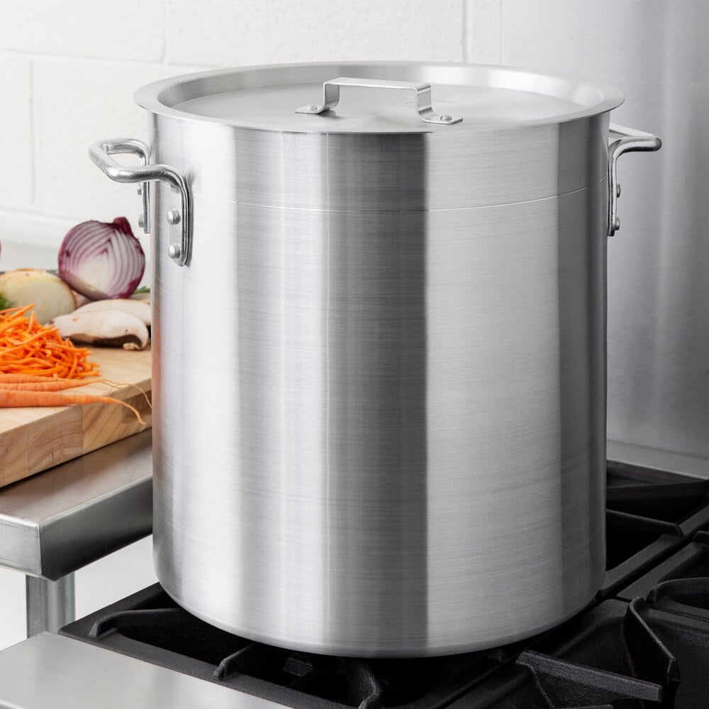 Read More ReviewsMade with 3003 aluminum, this stock pot and cover offer superior thermal conductivity. Aluminum also heats much quicker than its stainless steel counterparts for quick, efficient use in a busy kitchen. Measuring 4mm thick, its durable construction ensures long-lasting performance through washing, storage, and constant heating.