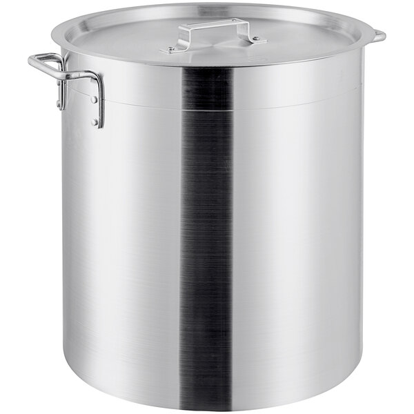 Customers appreciate this aluminum stock pot for its sturdy build and great size, making it a popular choice for various cooking needs. It is noted for being affordable and versatile, though some mention the lid fit could be better. Overall, it's recommended for its value and functionality in both professional and home settings.