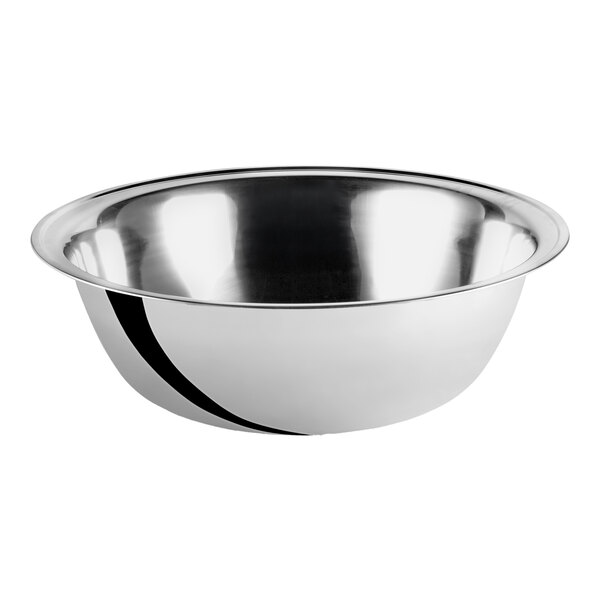 This bowl can easily handle organizational tasks and food preparation for your delicious sides, entrees, and desserts. Constructed of durable 21 gauge, type 204Cu stainless steel with a 0.7 mm thickness, this heavy weight bowl can stand up to everyday use in your commercial kitchen. Plus, this bowl's heavier weight also gives the user more control, preventing it from moving and sliding while in use. Its large size is great for tossing and coating foods, making batter in bulk, or processing large amounts of ingredients.
