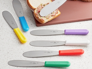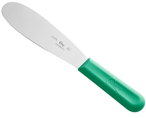 Featuring a wide, flat blade surface for great coverage and easy spreading, this spreader is perfect for preparing foods in school cafeterias, delis, cafes, and other high-volume operations. Use it to spread butter, jelly, mustard, mayonnaise, and ketchup. An extremely versatile kitchen tool, this spreader can do more than apply toppings, too - it can also be used to remove muffins and cupcakes from non-stick pans, trim frosting on cakes, or mix icing colors together.