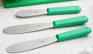 • Smooth, dull edges offer a safer way to spread your foods than knives