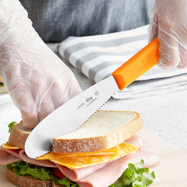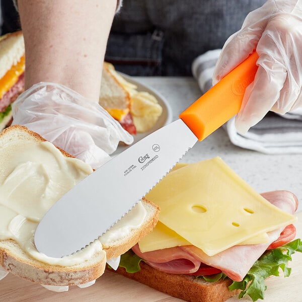 Featuring a versatile neon orange color, this spreader is an ideal addition to your color-coded kitchen operation.