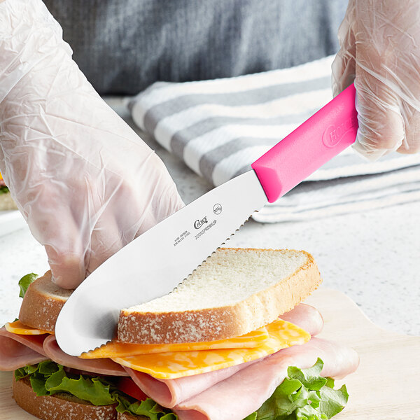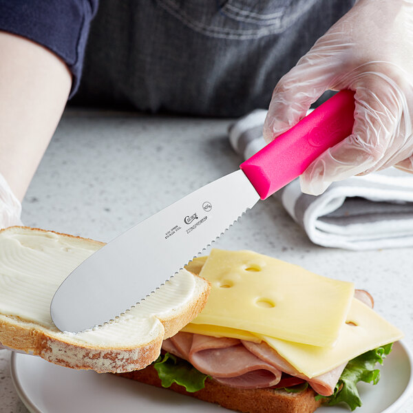 Featuring a versatile neon pink color, this spreader is an ideal addition to your color-coded kitchen operation.