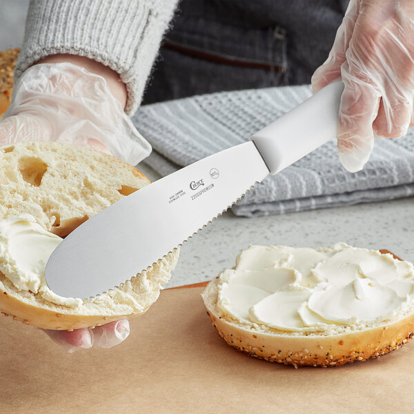 The scalloped edge of its high carbon stainless steel blade makes it easy to cut the product after spreading condiments on the surface, essentially giving you two tools in one with this multi-purpose design.