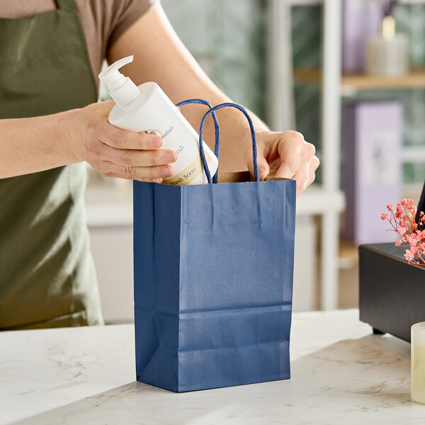 Choice 5 1/2" x 3 1/4" x 8 3/8" Navy Blue Paper Shopping Bag with Handles - 250/Case