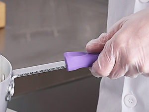 The purple color can be utilized for identification of allergen-free use in a color-coded system, so you can always have the a tool on hand to cater to customers with allergies. The handle is also heat-resistant up to 450 degrees Fahrenheit or 600 degrees Fahrenheit intermittently to keep it cool for ultimate safety!