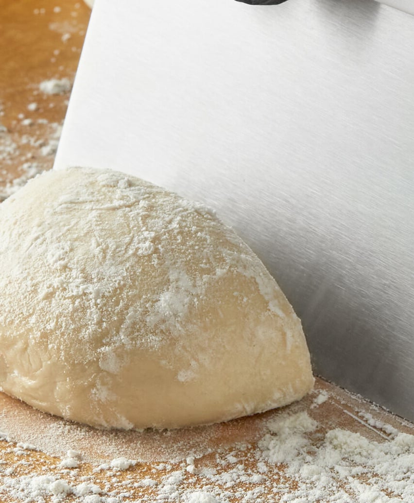 Not only can it slice through dough to create perfect portions, but it can also help scrape up any leftover dough as well. It's great for other cooking tasks, too! Use it to pick up chopped vegetables or diced meat and to transfer ingredients from the cutting board to a mixing bowl or pan.