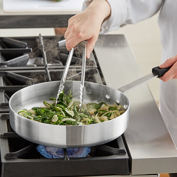 Constructed of 3003 series, 4mm thick aluminum, this saute pan is built to withstand your cooking endeavors in a commercial environment while remaining lightweight for comfortable use.