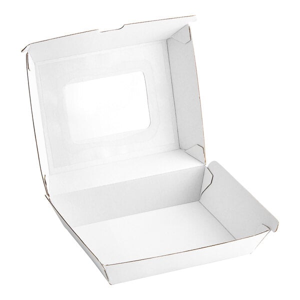 It's great for taking different types of hot and cold foods to go, including salads, sandwiches, burgers, and fries. This white container is a must-have for any restaurant, cafe, or concession stand that offers to-go options!