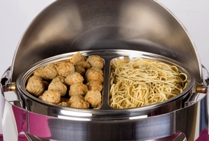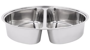 We have been pleased with this divided round food pan that fits inside the Choice Round Chafer. We use it often for serving brown gravy and turkey gravy.