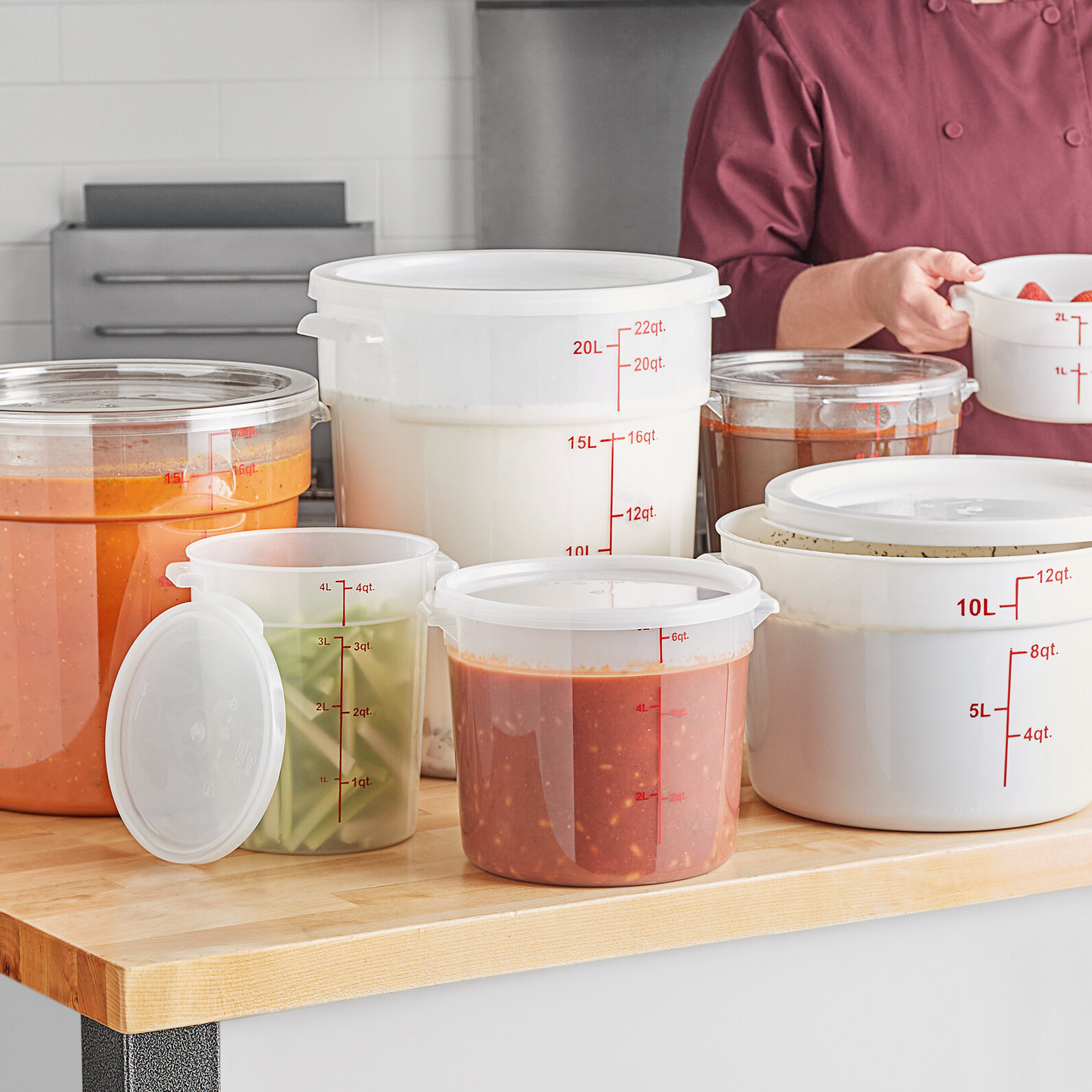 Designed specifically to work with a Choice 6 or 8 qt. round food storage container, use this lid to cover freshly chopped fruit salad, sliced vegetables, soup stock, or stew! Plus, it helps prevent outside contaminants from getting in. Whether you're a chef, caterer, or cafe owner, this 6 and 8 qt. food container lid is the best choice for your business.