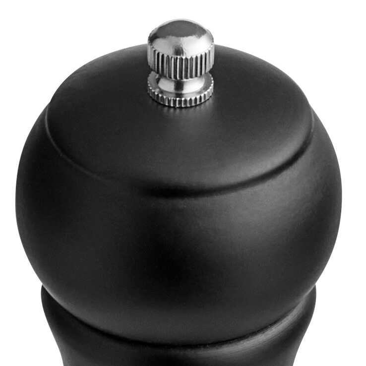 This salt / pepper mill is designed with a durable turned wood body for combined quality and excellence. The wood is easy to clean and holds up under everyday conditions at your restaurant or catered events. Plus, it features a sleek black finish, great for adding a contemporary touch to any occasion.
