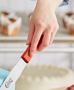 This 8" bakers spatula with wood handle is perfect for smaller cakes and other pastries. It's very easy to use for smothing out or filling cakes. Definitely recommend.