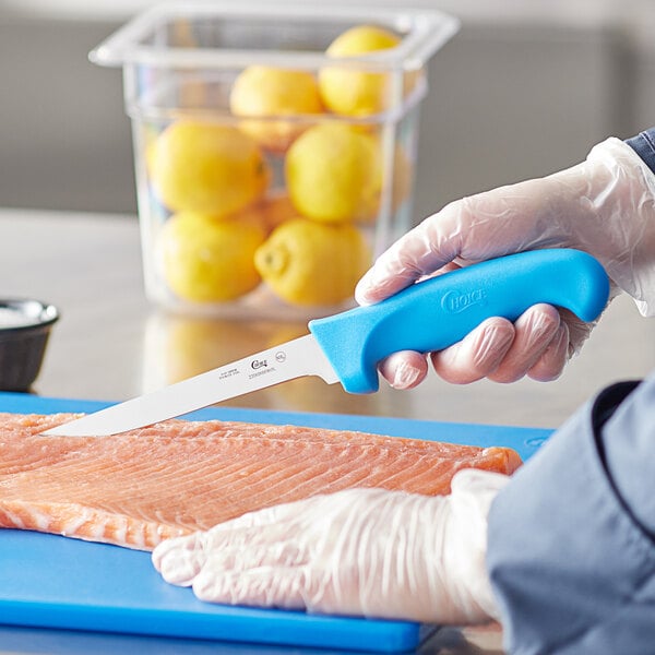The HACCP blue colored handle helps this knife stand out. It is also great for creating a color-coded system in your kitchen to prevent cross-contamination.