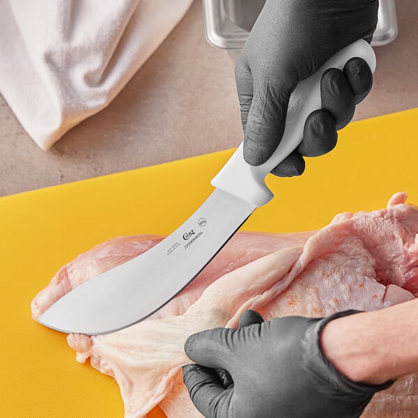 Great for use in any restaurant or butcher shop, this skinning knife is excellent for removing skin from cuts of meat. The curved blade design facilitates this process by making it easier to remove skin in deft cut strokes for quick and efficient preparation of a variety of meats.