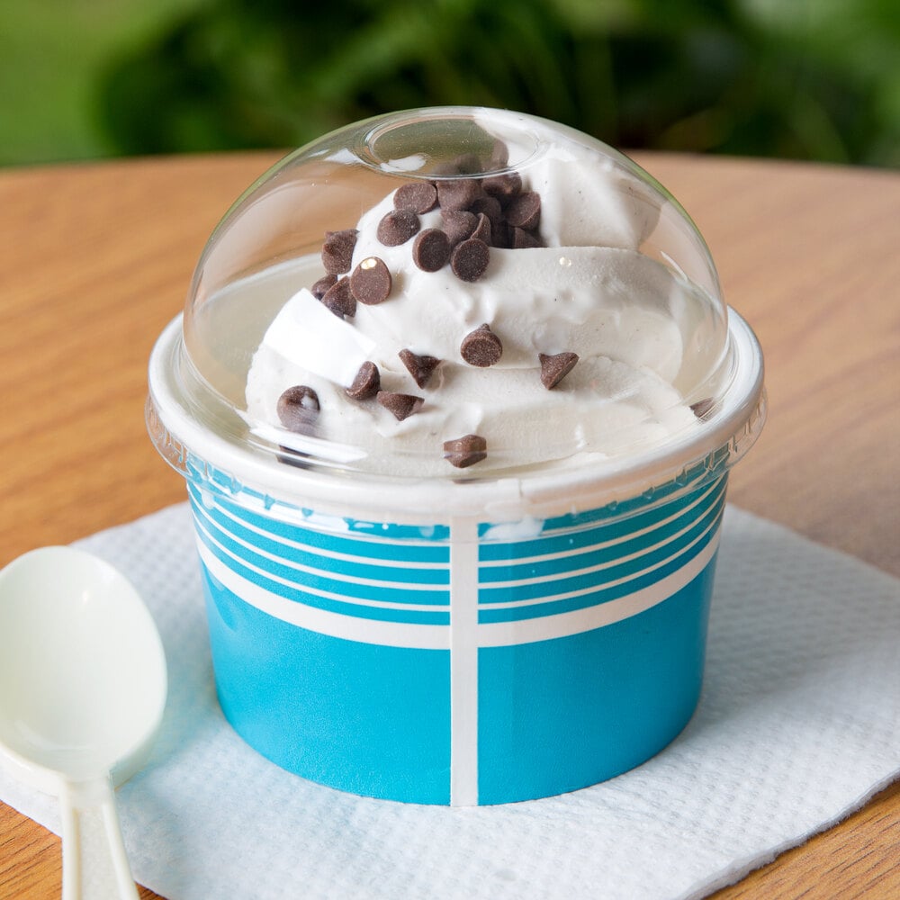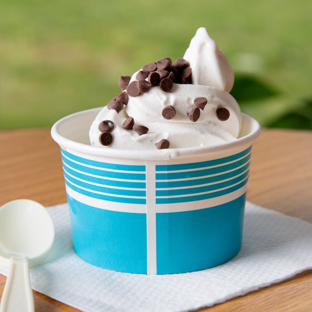 Designed for ice cream shops, concession stands, diners, restaurants, and bakeries, this versatile cup is perfect for serving take-out ice cream, frozen yogurt, and other menu favorites. Its eye-catching bright blue color scheme helps add a pop of personality to any setting, while the 6 oz. capacity allows users to pile on toppings or add an extra scoop of their favorite flavor with incredible ease.