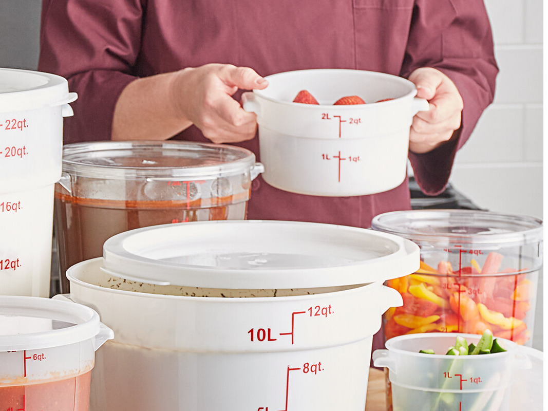 - Item #: 176rnd6w12csChoice 6 Qt. White Round Polypropylene Food Storage Container with Lid - 12/Case