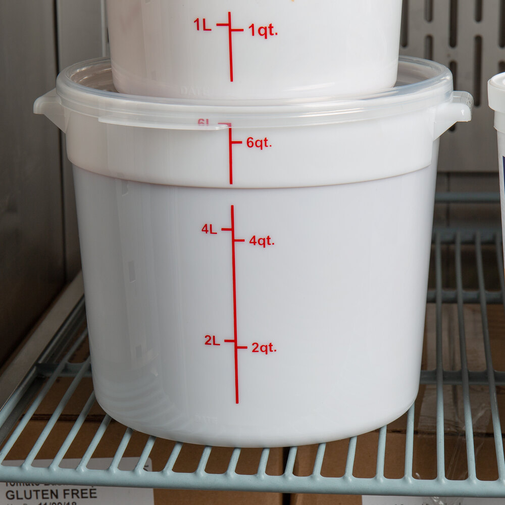 This food storage container is perfect for restaurants, caterers, delis, and cafes. The textured bottom provides durability against scratches and doubles as a non-skid surface, meaning your container won't easily slide around. When paired with a compatible lid (sold separately), it keeps food fresher for longer than when covered with traditional foil or plastic wrap. Use this 6 qt. container to store any ingredient or prepped food in your commercial kitchen.