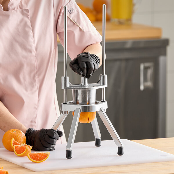 Perfect for any establishment that wants to save time, energy, and labor during food prep, this Choice Prep 6 section wedge cutter fits the bill. This wedger quickly turns products into 6 uniform wedges, making applications virtually limitless! You can cut anything ranging from lemons, limes, and oranges for drink garnishes to cucumbers and tomatoes for salads.