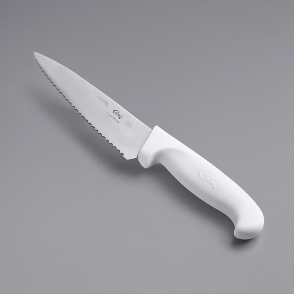 Read More ReviewsThe stainless steel serrated blade edge allows for the knife to easily tear through the tough skins and exteriors of a variety of foods without damaging soft insides. Crafted with high carbon stainless steel, this dependable knife offers the high rust- and stain-resistance your business requires.