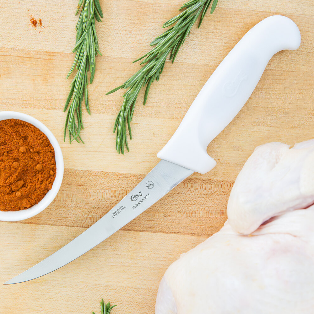 - Item #: 220kwbonc6sfChoice 6" Curved Stiff Boning Knife with White Handles