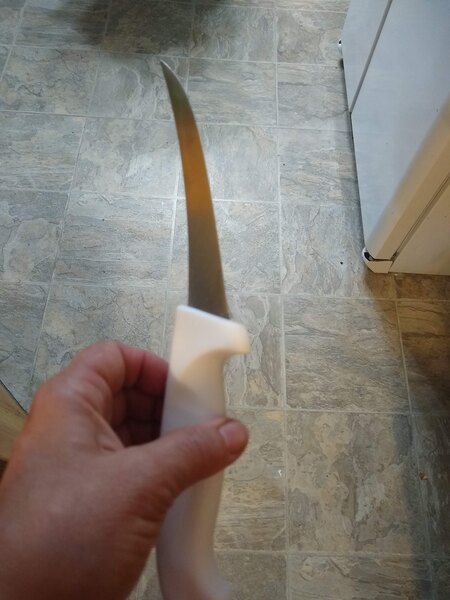Very nice knife it is very light and flexible, really sharp when brand new and re sharpening is easy...nice handle a litle bit sleepery when wet but it is ok. I use it often to debone fish like tuna and wahoo.