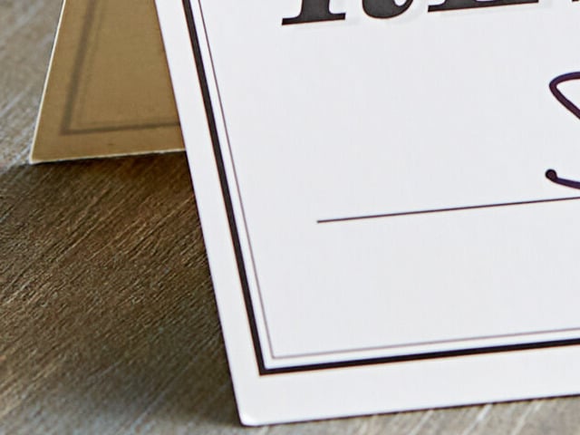 The signs are made of paper stock material, which is easily maneuvered to remain standing on tables until the dining experience begins!
