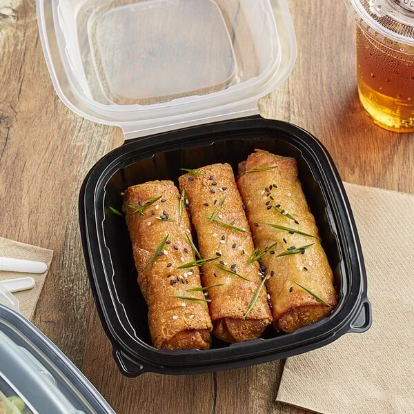 Its black base and clear lid accentuate your food, while its anti-fog vent minimizes condensation for excellent product visibility.