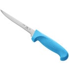 This stiff knife is great for deboning thick, less tender meats, and the narrow blade allows for easy, precise cutting around bone and cartilage. Providing incredibly lean, properly portioned cuts of ribs and meat chops, it is a staple for any restaurant, butcher shop, or grocery store. Long-lasting, lightweight, and affordable, this Choice boning knife is a valuable addition to commercial kitchens.