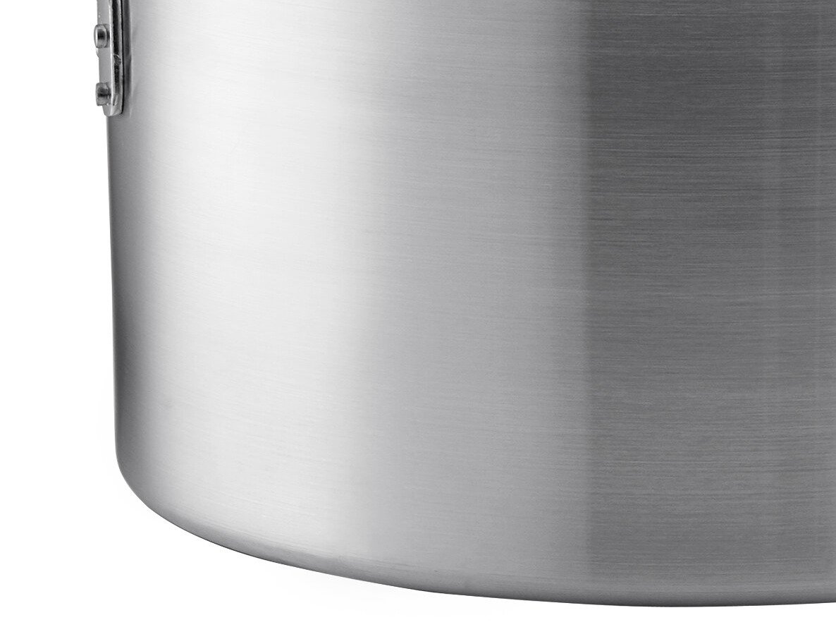 This sauce pot features a heavy-duty 3003 series aluminum construction with a 4mm thick aluminum core to provide superior thermal conductivity and heat distribution.
