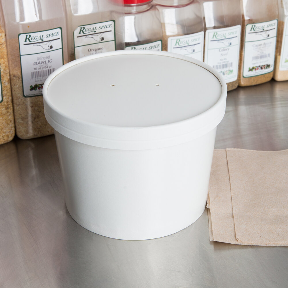 • Choice 64 oz. White Paper Soup / Hot Food Cup Vented Lid - 25/Pack