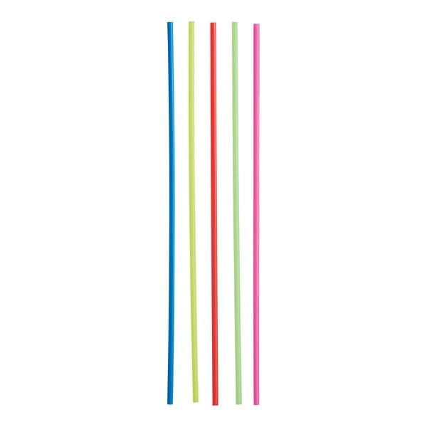 Customers appreciate these neon beverage stirrer/sip straws for their vibrant colors and versatility, finding them perfect for both stirring and sipping in various settings like bars, parties, and home use. They are praised for their good length, durability, and the fun element they add to drinks, making them a popular choice for enhancing beverage presentation.