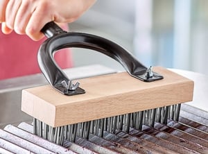 - Removes baked-on grease and food product from charbroilers and grills