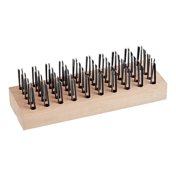 - Durable solid wood body with rugged steel bristles