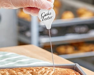 Nice little cake tester! Thin enough that it won't leave a mark in your cakes, and certainly long enough to handle bundt cakes. I'll be buying some extras to keep around, and its nice to have some extras so you dont have to keep washing the same one every 5 minutes.