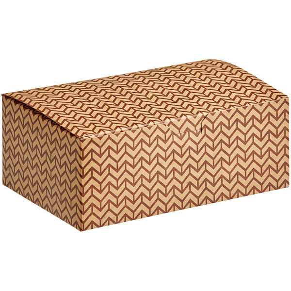 Serve food in style with this Choice 7" x 4 1/2" x 2 3/4" cornerstone print take-out snack / chicken box with tuck top! This handy box is ideal for offering small meals, fried chicken, and french fries to-go, making it perfect for restaurants, cafes, delis, and caterers.