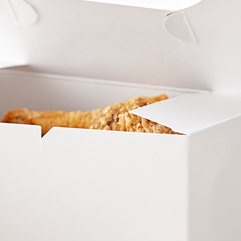 Serve food in style with this Choice 7" x 4 1/2" x 2 3/4" white take-out snack / chicken box with tuck top! This handy box is ideal for offering small meals, fried chicken, and french fries to-go, making it perfect for restaurants, cafes, delis, and caterers.