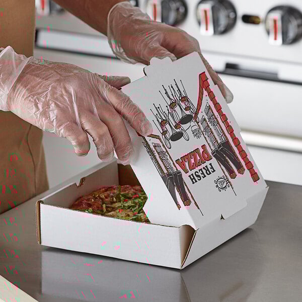 Once your guests have finished eating, this convenient white box is recyclable for fast clean up. Plus, it features a convenient ingredient check list on the side, enabling you to mark each pizza's toppings for fast order identification at your pizza parlor, Italian restaurant, or convenience store.