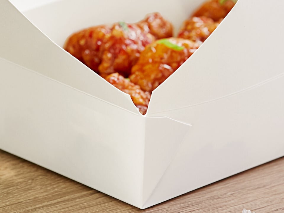 Featuring an attractive, folded design, this container is perfect for boxing up both hot and cold foods. The #3 size is ideal for housing sides and desserts. Plus, the SBS paperboard construction provides added durability. Holding up to 66 fl. oz., this container is ideal for your heavy, fried or sauce-soaked foods.