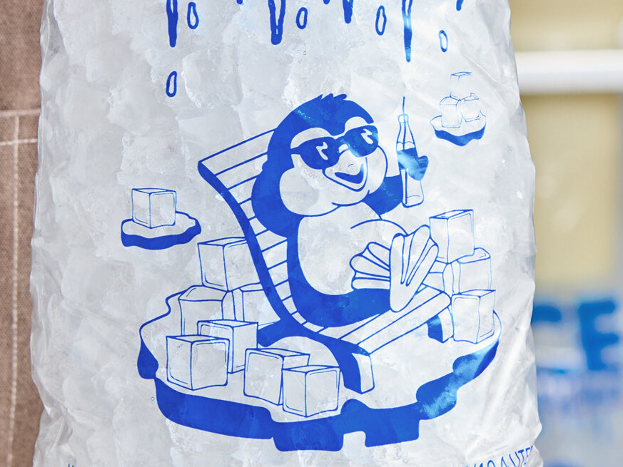 Thanks to the barcode at the bottom, employees can easily ring out customers' ice bags at the register.